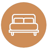 1 lit en 160 cm, espace bureau, repose valise, fauteuil, rangement (placard : côté lingerie et côté penderie)